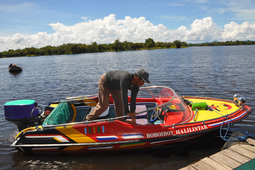 モーターボートに乗り込み、いざセンタルン湖へ!
