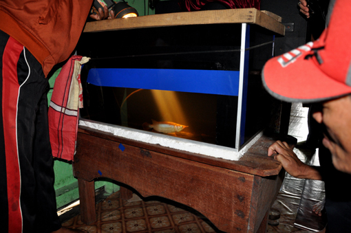 水上ハウスのストックルームには、極上のアロワナ達がストックされていた。