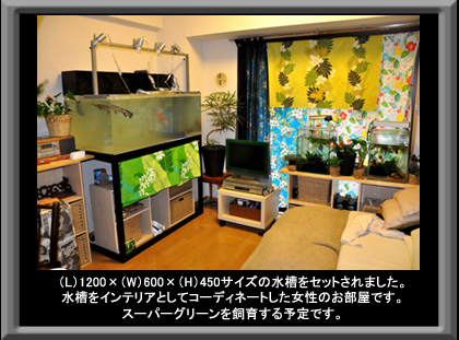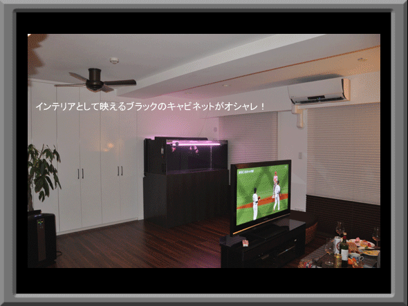 新居のリビングに設置したキャビネット水槽 (千葉県 K氏邸)