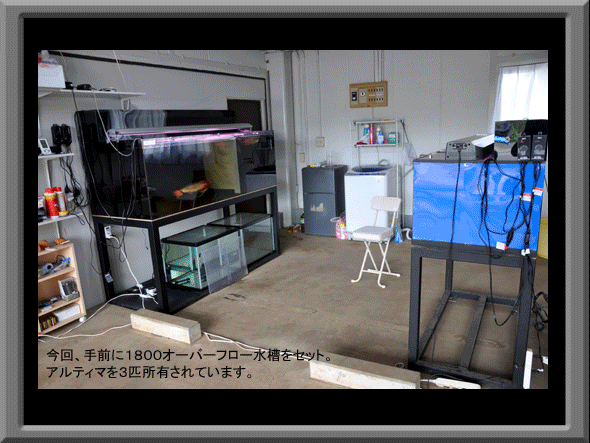 ガレージの中の水槽コーナー (千葉県 K氏邸)