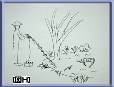 り、他の2人は、仕掛け網の両端を持って水の中に入り反対方向へ泳ぎだすのであ